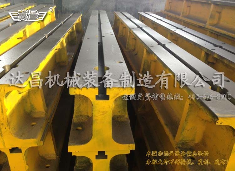 鑄鐵單T型槽平臺、地梁、地槽鐵、基礎(chǔ)槽鐵。單T型槽平臺采用高強度灰口鑄鐵HT200-250,工作面硬度為HB170-240,鑄件經(jīng)過兩次人工退火600℃-700℃或自然時效2-3年,去除內(nèi)應(yīng)力,精度穩(wěn)定,不易磨損。